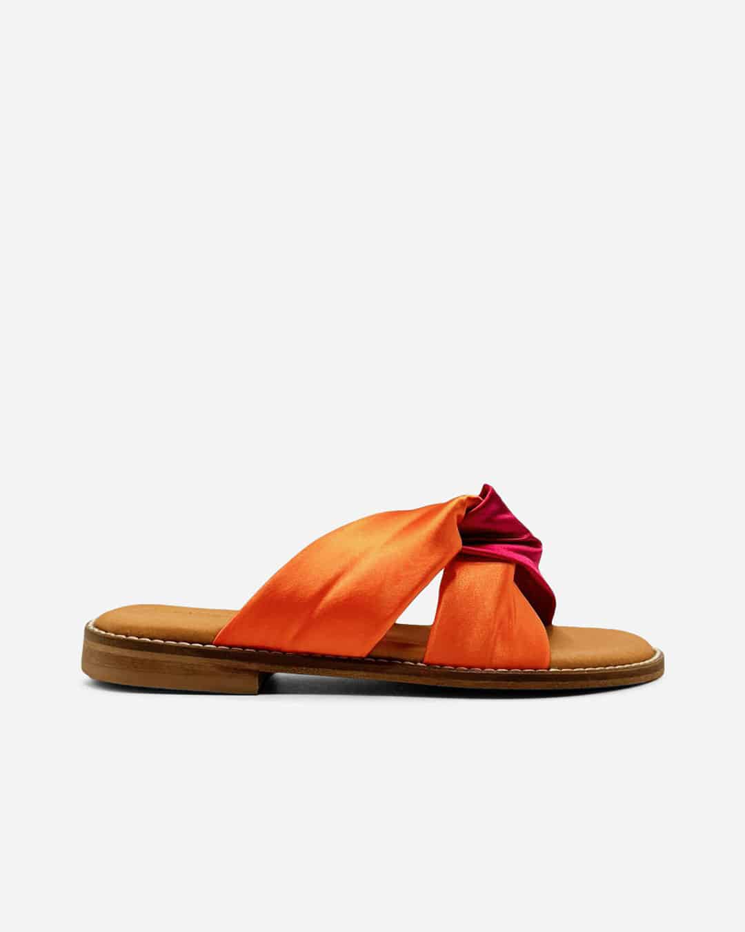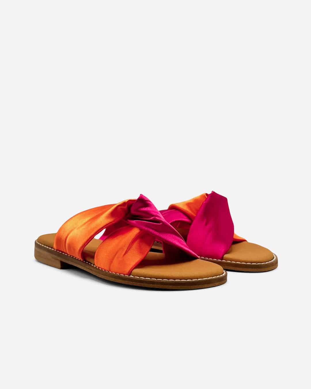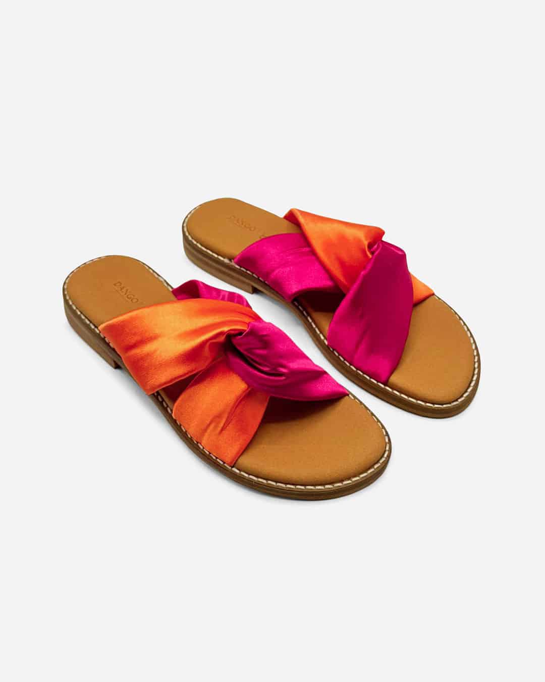 Chinelo Dango com cruzado em cetim laranja e rosa, extremamente confortável para o dia-a-dia.