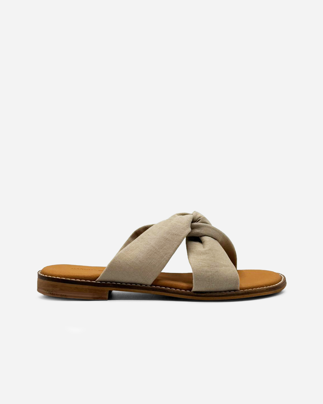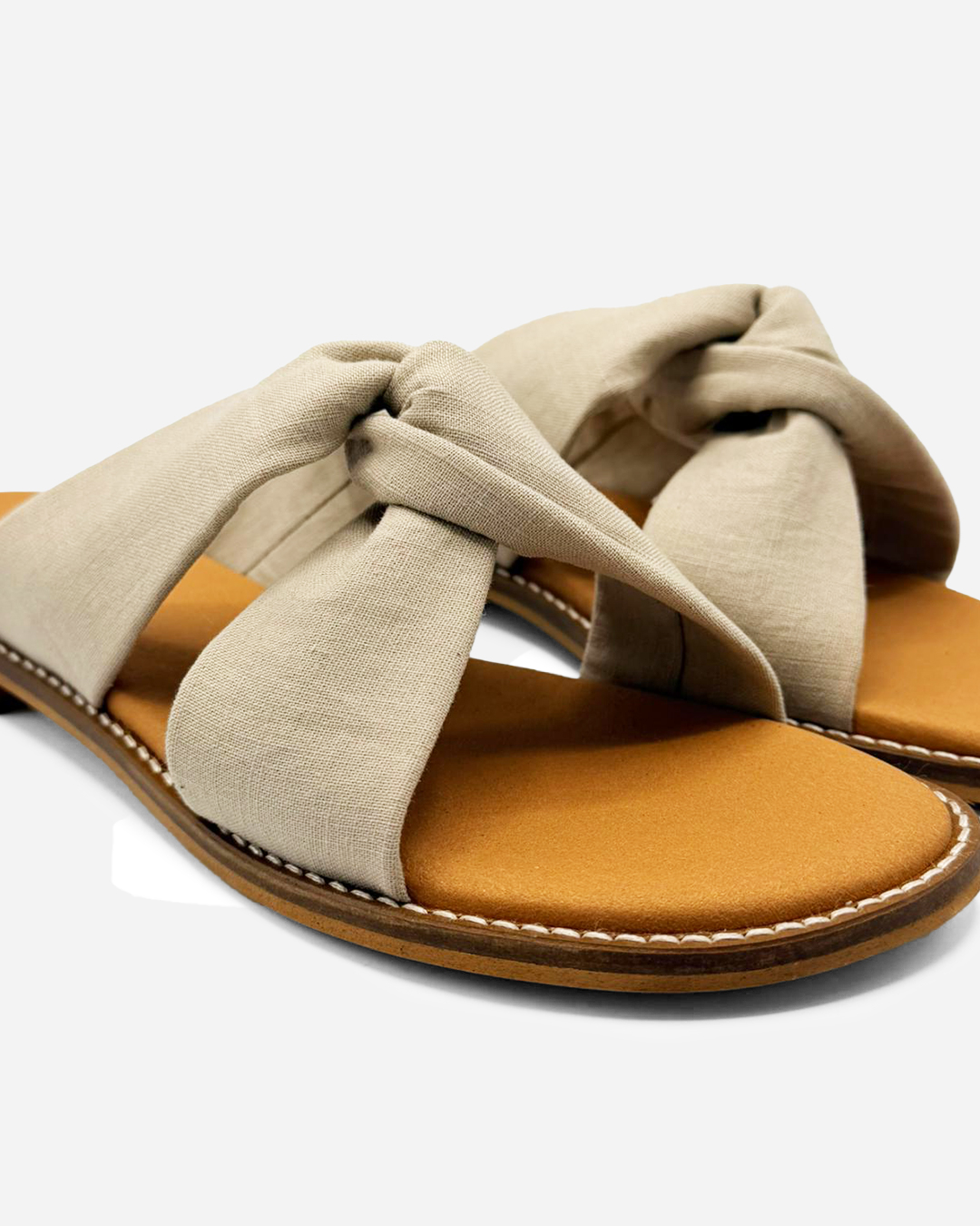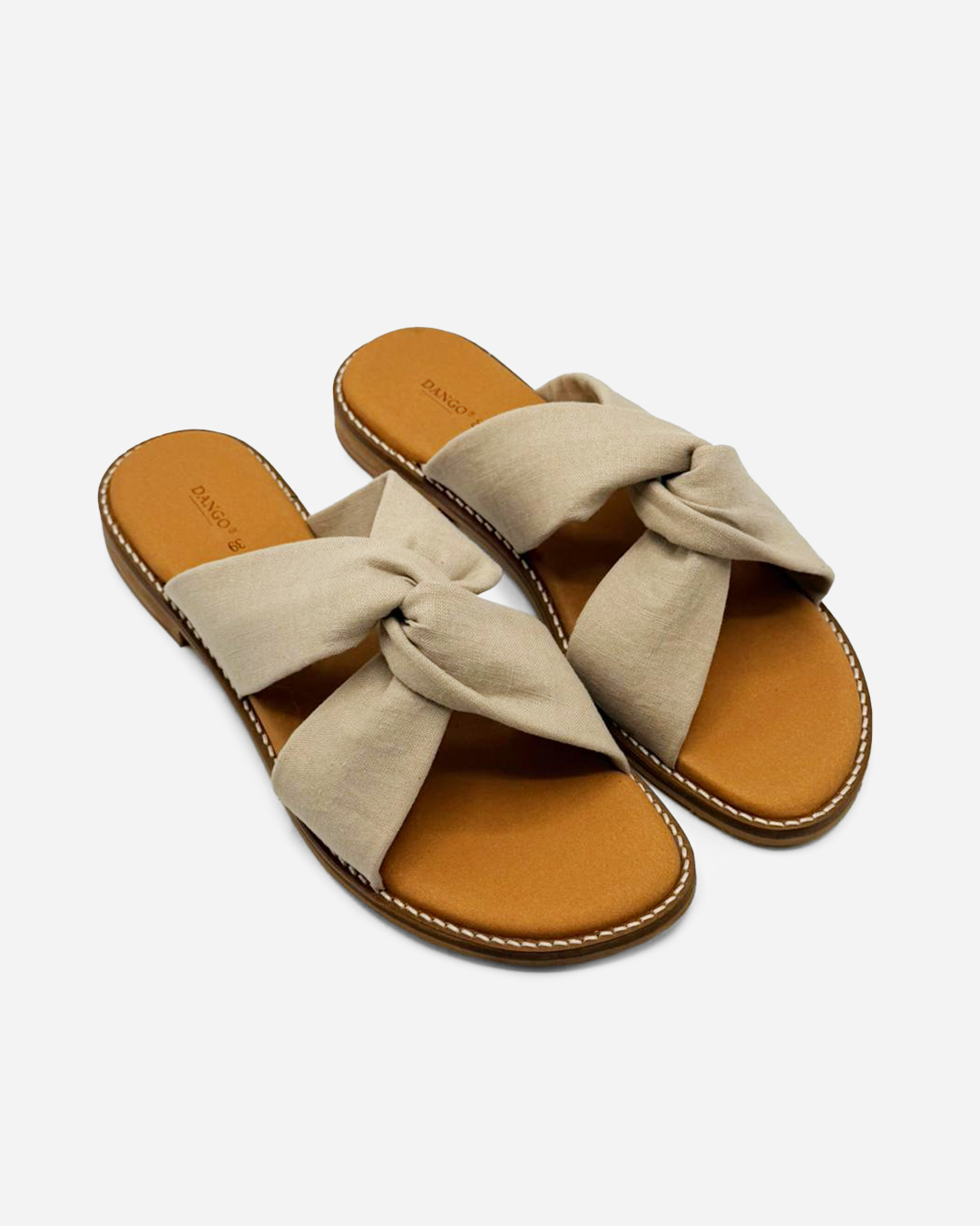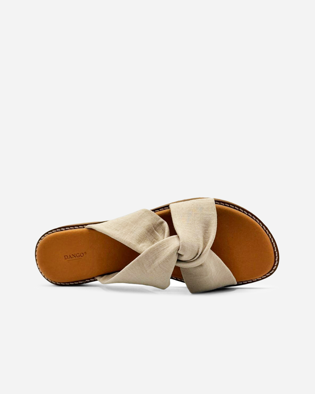 Chinelo Dango com cruzado em linho nude, extremamente confortável para o dia-a-dia.