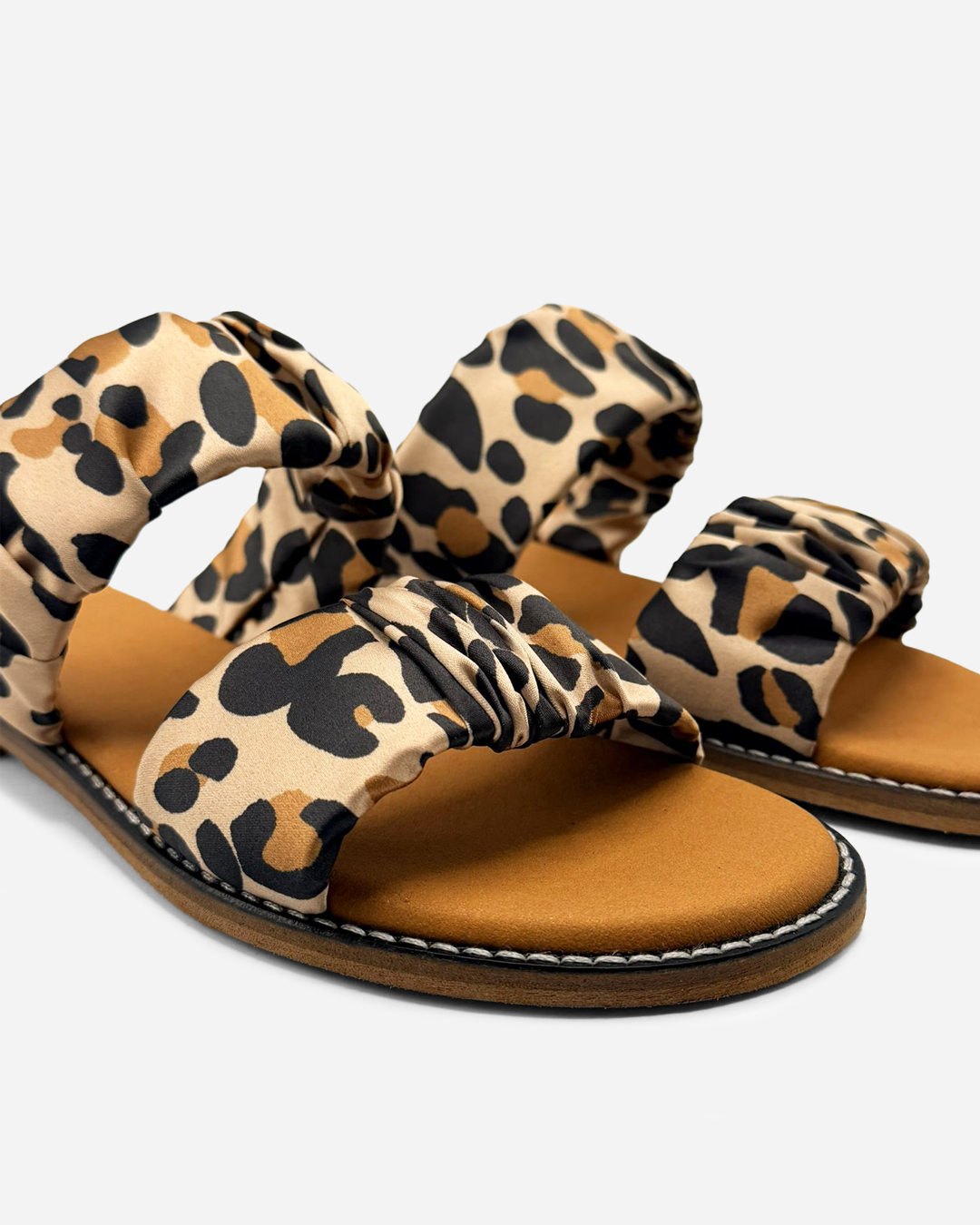 Chinelo Dango com tiras cetim leopardo , e sola baixa, extremamente confortável para o dia-a-dia.